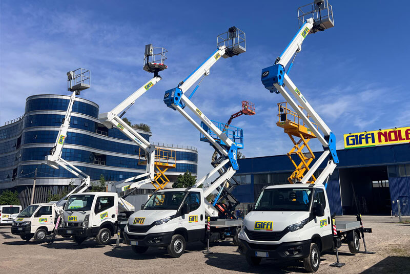 Renting aerial platforms through Giffi Noleggi is simple and cheap. With us, you have a wide choice of equipment: rent platforms that reach up to 75 metres in height and 40 metres of lateral outreach, booking directly online The passion
