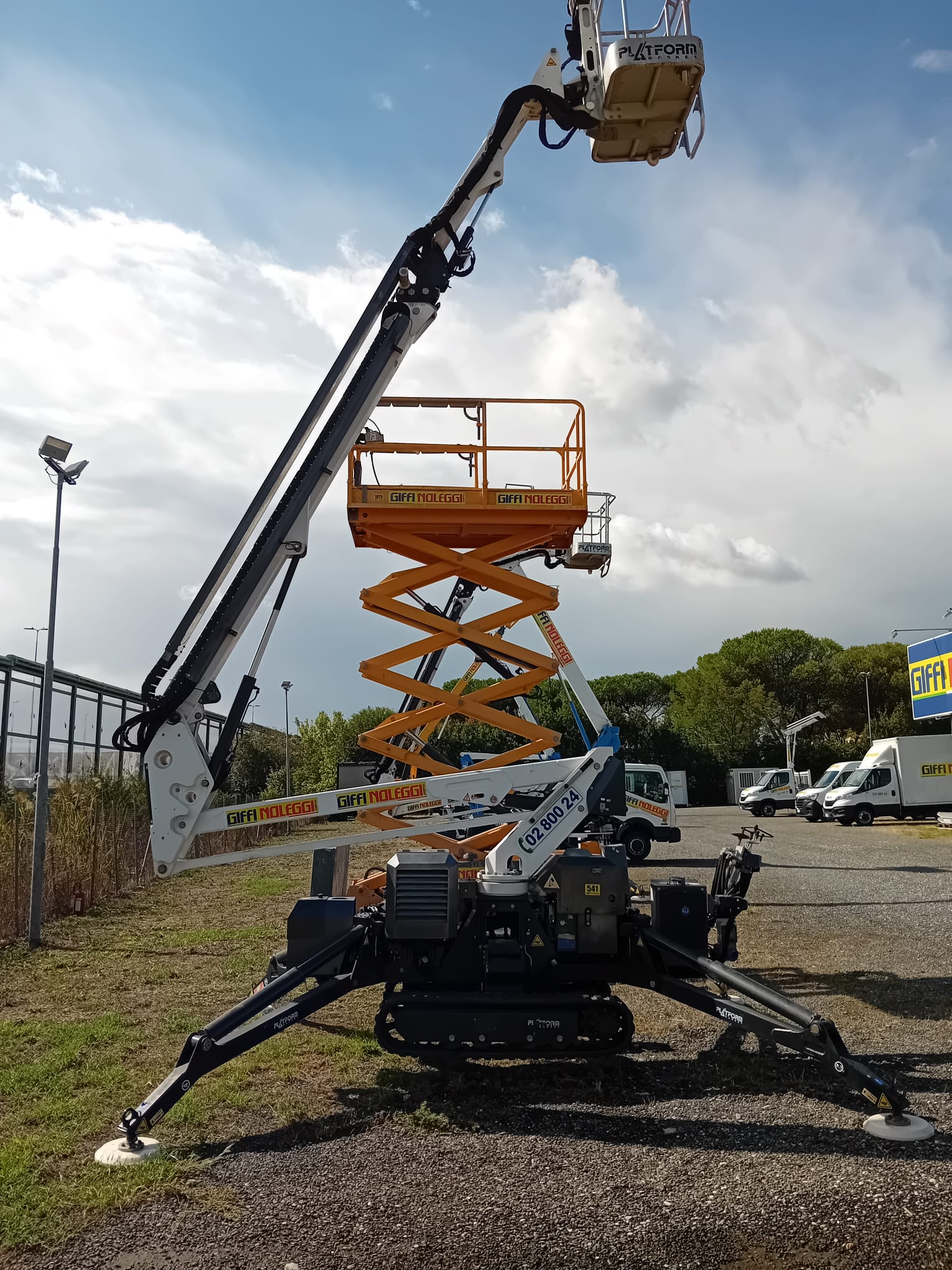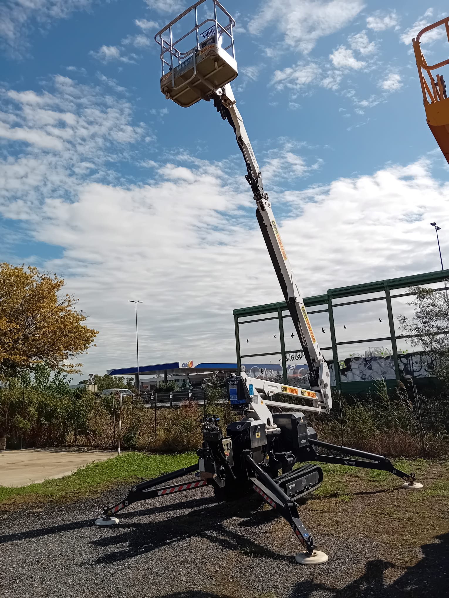 La piattaforma aerea ragno Spider Basket 18/90 PRO ti permette di raggiungere qualsiasi zona di lavoro (in quota) grazie al pratico JIB in combinazione al braccio articolato.