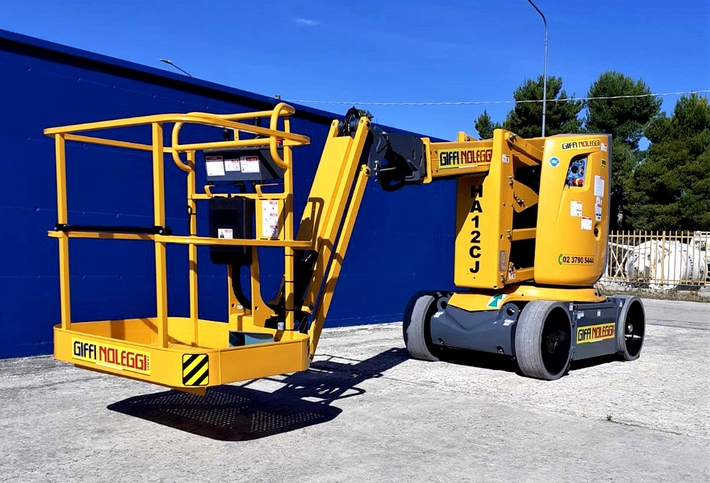 Clicca quiSemovente elettrica Haulotte Star 10. Ottima per lavori con spazio ridotto grazie allo stretto raggio di sterzata con il jib positivo/negativo.