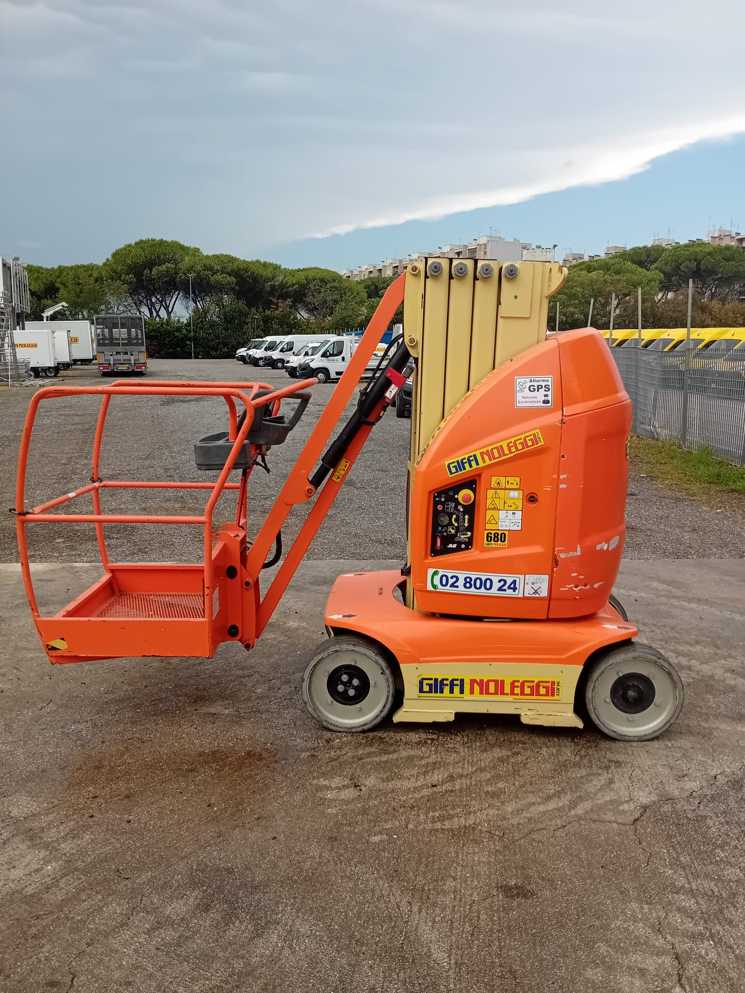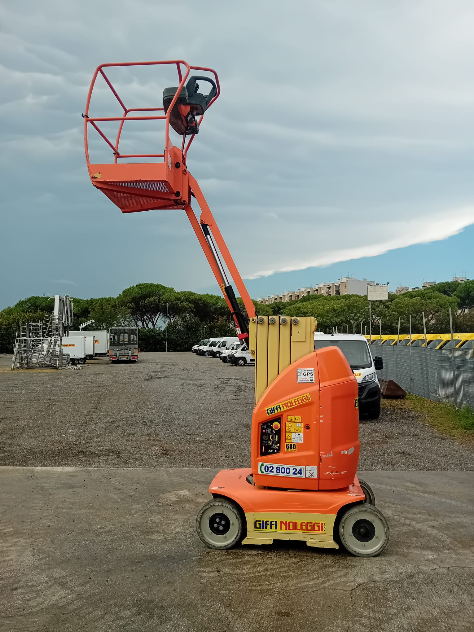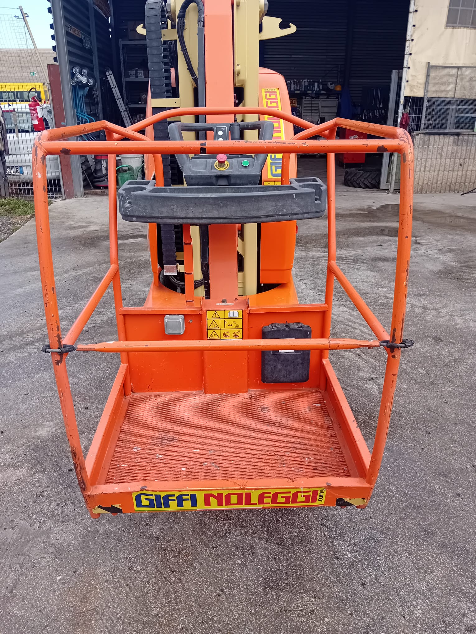 Dotata di dispositivo anti-ribaltamento fisso e quadro comandi fisso in cesta