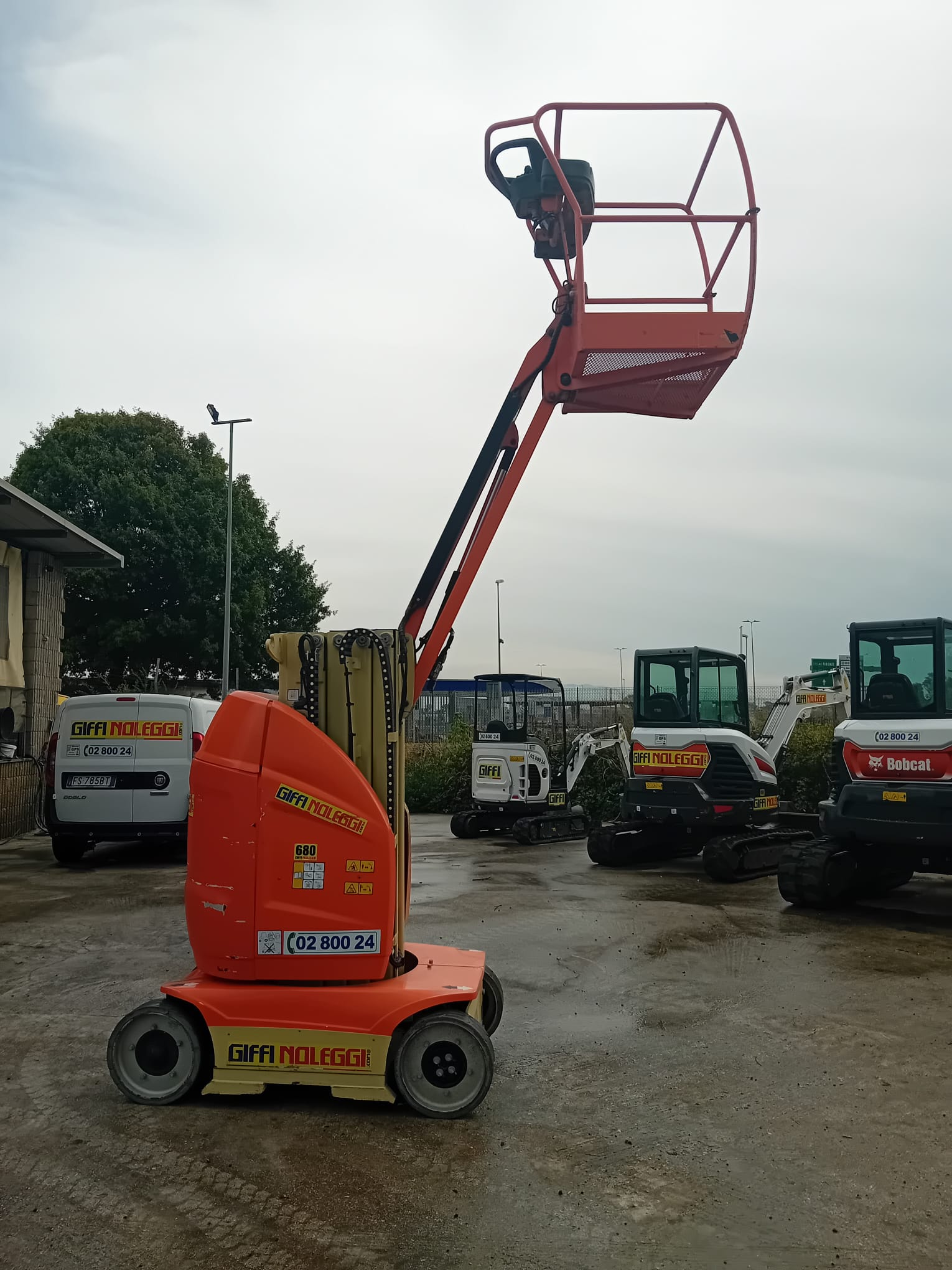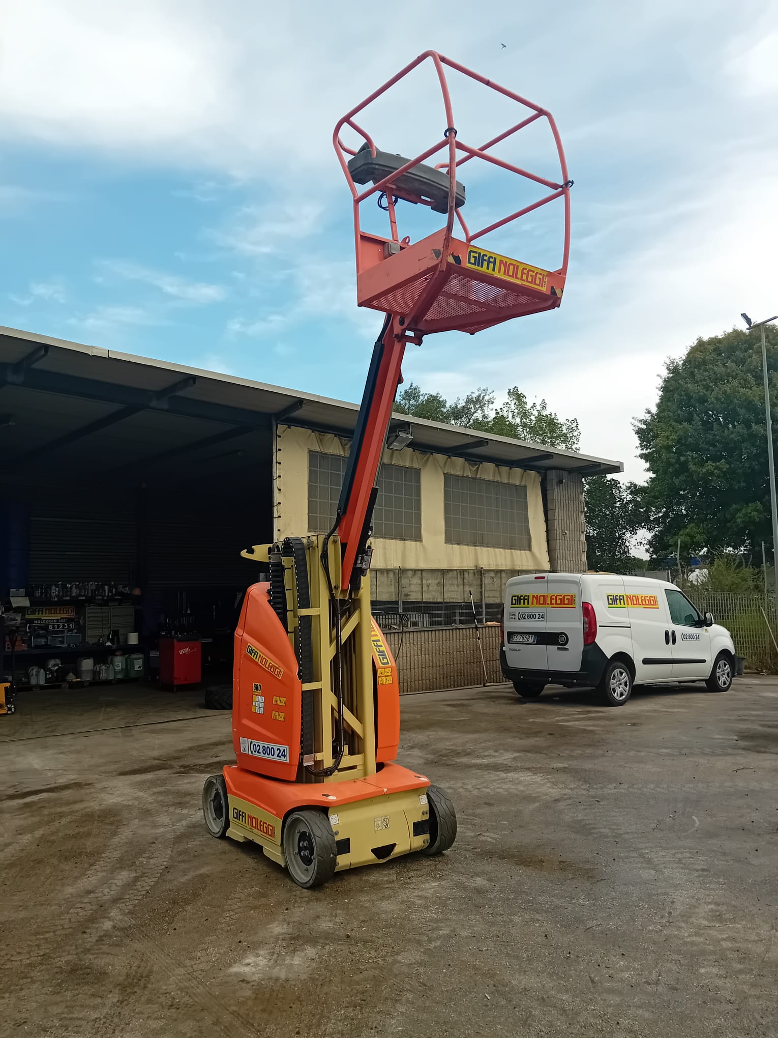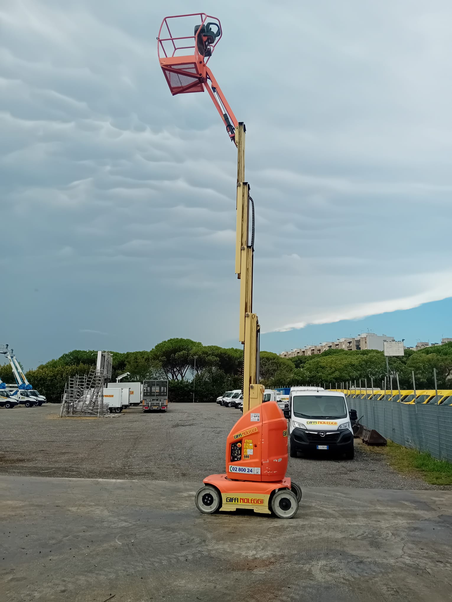 Dotata di dispositivo anti-ribaltamento fisso e quadro comandi fisso in cesta